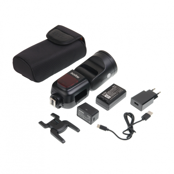 Вспышка Godox Ving V1P TTL с круглой головкой для Pentax Круглая головка Круглая форма головки является одной из основных особенностей вспышки Godox Ving V1P - это позволяет получить совершенно круглый световой пучок света студийного качества для мягкого и естественного освещения. Зумирование головки вспышки управляется автоматически или вручную, диапазон зумирования 28 - 105 мм позволяет создать необходимый угол свечения для экономии батареи и сокращения времени перезарядки. Головка вращается по горизонтали на 330° и имеет угол наклона от -7° до +120°, это означает возможность отклоняться назад без необходимости поворота головки, благодаря этому повышается эффективность съемки в отраженном свете. Обладая большой мощностью, широким набором функций и возможностью установки различных аксессуаров на магнитном креплении, вспышка подходит для съемки портретов, свадеб, репортажей (в том числе спортивных), трэвел съемки, предметной съемки и т.д. Полный контроль экспозиции Вспышка Godox Ving V1P с круглой головкой и мощностью импульса 76 Дж представляет собой усовершенствованный источник света с функциями, которые отвечают самым современным требованиям фотографов. Вместе с полной совместимостью с режимом TTL, вспышка также поддерживает режим компенсации экспозиции (FEC), брекетинг (FEB) и блокировку экспопары (FEL), а также такие функции, как: высокоскоростная синхронизация (до 1/8000 с), синхронизация по первой/второй шторке, функция стробоскопа. Мощность регулируется от 1/1 до 1/256 (9 стопов с шагом 1/10 стопа), длительность импульса составляет до 1/20000 с. Новая система питания Конструкция вспышки предусматривает уникальную систему установки батареи, нет никаких откидывающихся крышек, которые могут сломаться. В корпусе вспышки имеется сквозное отверстие, в которое вставляется батарея. Теперь, при разрядке аккумулятора, его легко и быстро можно заменить на новый, без риска повредить крышку отсека. Литий-ионная батарея емкостью 2600 мАч обеспечивает длительный срок службы и быстрое время перезарядки, а также позволяет сделать до 480 импульсов на полной мощности, время перезарядки составляет менее 1,5 с. Система беспроводного управления Godox X Встроенный модуль системы радиосинхронизации Godox 2.4G X обеспечивает полный дистанционный контроль всех параметров и совместимость всех вспышек семейства Godox и совместимых с ней, от самых простых накамерных вспышек до студийных TTL-моноблоков. Все вспышки в системе будут работать от одного передатчика на камере, вне зависимости от того, какое конкретно оборудование используется в данный момент. Дополнительно можно купить передатчик (Xpro, X1 или X2), который поддерживает дистанционное управление в режиме TTL и такие функции, как компенсацию и блокировку экспозиции (FEC, FEB, FEL), высокоскоростную синхронизацию с выдержкой до 1/8000 с, режим стробоскоп и т.д. Пилотная лампа Для предварительной оценки светотеневого рисунка внизу головки находятся два светодиода мощностью 2 Вт, которые представляют собой моделирующую лампу с диапазоном регулировки яркости в 10 ступеней. Механизм блокировки QuickLock Новый механизм блокировки позволяет быстро и надежно закрепить вспышку в башмаке камеры или на подставке с помощью небольшого рычага, и также быстро ее снять. Удобное управление На панели управления находятся кнопки для переключения режимов, а также коле