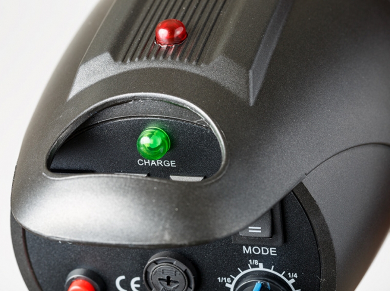 Панель управления расположена сзади. Там есть: тумблер «Сеть», отключение ловушки для света, отключение сигнала бипера, переключатель мощности «пилота», клавиша «Test» для ручной проверки работы вспышки, предохранитель, аналоговая ручка выбора силы импульса, вход «джек» для разъема синхронизатора, диаметром 3,5 мм, фишка для питающего кабеля, индикатор готовности. Разблокирование замка Bowens производится удобной клавишей, которая находится сверху корпуса. Там же расположен и находится фотоприемник для синхронизации по световому импульсу. Моделирующий свет может иметь мощность от 50 до 75 Вт. Более мощные лампы ставить не рекомендуется, поскольку они имеют более высокую температуру. Специальный механизм позволяет регулировать наклон моноблока, а круглый слот служит для установки студийного зонта. Выбор мощности светового импульса и яркости моделирующего света производится одной ручкой.